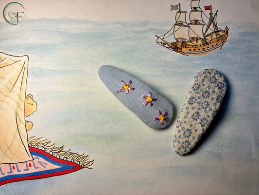 Lilac Whimsy Handmade Fabric Hair Clips – Embroidered & Printed Floral Set | Soft Vintage Hair Accessories for Girls & Women